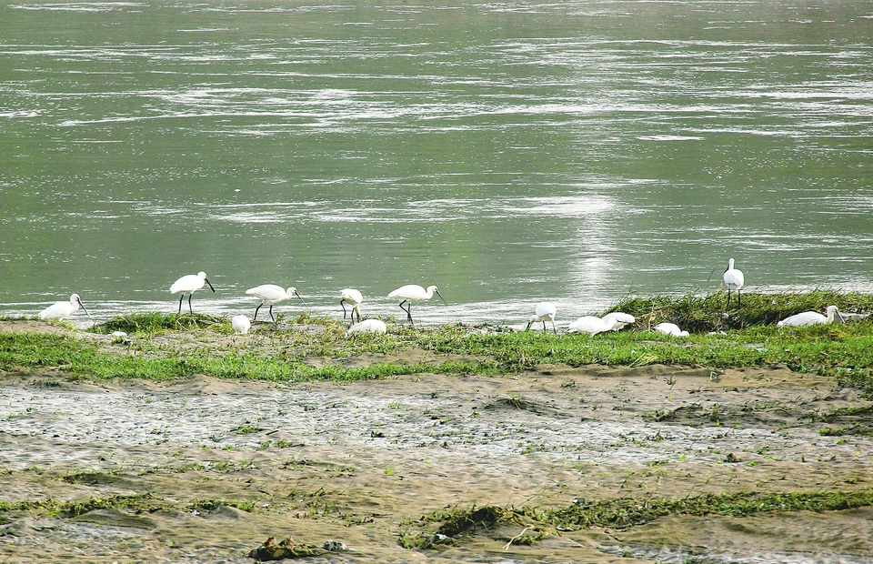 • 白鷺在襄汾縣汾河水域內棲...